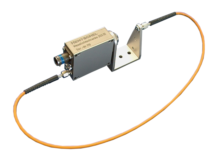 Die Lichtschranke 203.10 kann zur Geschwindigkeitsmessung bewegter Objekte oder als Lichttaster für Positionierungsaufgaben mit Messdistanzen für bis zu 60mm verwendet werden. Sie ist als Gabel aufgebaut, die von einem Lichtwellenleiter und einem Empfangselement mit Lochblende gebildet wird.