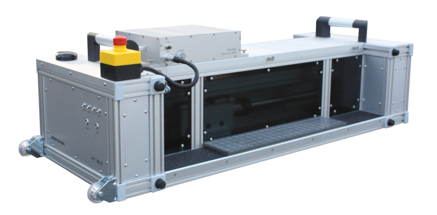 Der „Portable Friction Tester“ (PFT) ist ein mobiles Messgerät zur Ermittlung des Reibwertes einer Straßenoberfläche. Das System ermöglicht die Messung der Haftreibung (µH) sowie der Gleitreibung  (µG) in einem bestimmten Bereich der Oberfläche. Für die Reibwertmessung wird eine Gummiprobe mittels eines Linearantriebs auf bis zu 2m/s beschleunigt. Über einen triaxialen Kraftsensor werden dabei die Anpresskraft der Gummiprobe und die Reibkraft in Bewegungsrichtung sowie seitlich zur Bewegungsrichtung gemessen. Aus der Kraftmessung werden von dem PFT vollautomatisch die Reibungskoeffizienten im Anschluss an die Messung gebildet, daher eignet sich der PFT hervorragend auch für die Materialforschung.